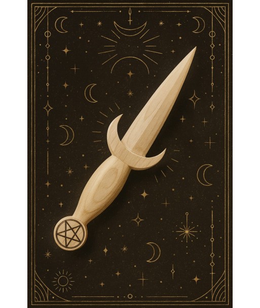 L’Athamé Lune & Pentacle est un outil rituel entièrement sculpté à la main dans du bois massif, conçu pour accompagner les pratiques spirituelles, ésotériques et cérémonielles.