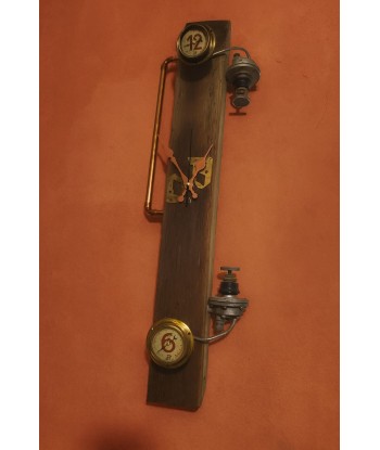 Les manomètres décoratifs retravaillés viennent symboliser le 12 et le 6, créant un cadran original typique du style steampunk.